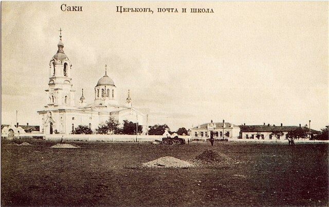 Саки представляют собою небогатую, пока малоизвестную и крайне плохо устроенную грязелечебницу с двухмесячным только курсом, поэтому больные, очевидно, должны быть довольны деревней, отдающей в наём в своих каменных, как везде в Крыму, крестьянских домиках, чисто содержимые и сносно меблированные комнаты. Такие комнаты в большинстве имеют деревянные полы, а если где пол земляной, то по своей отличной отделке немногим отличается от бетонного.