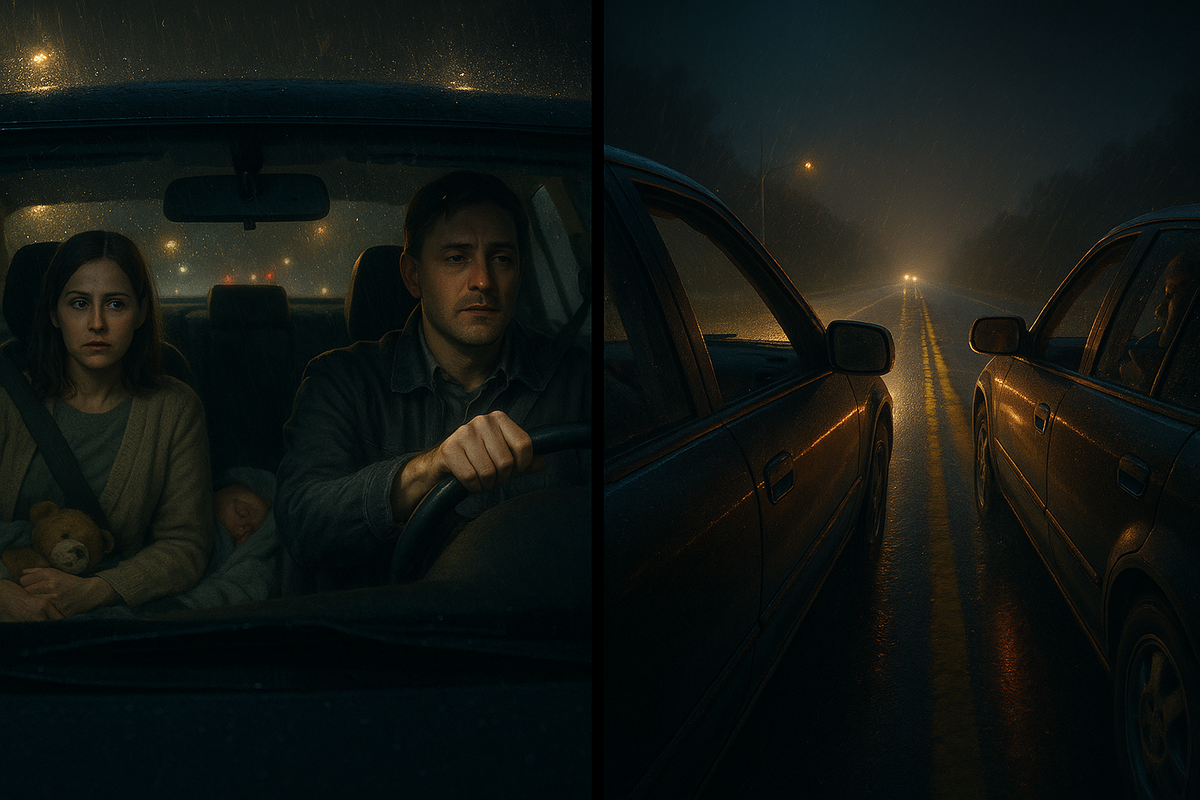 - Да нормально, я держу дорогу… - он кивнул, но взгляд уже плыл. На повороте мелькнули огни - встречная машина, фары бьют в глаза.