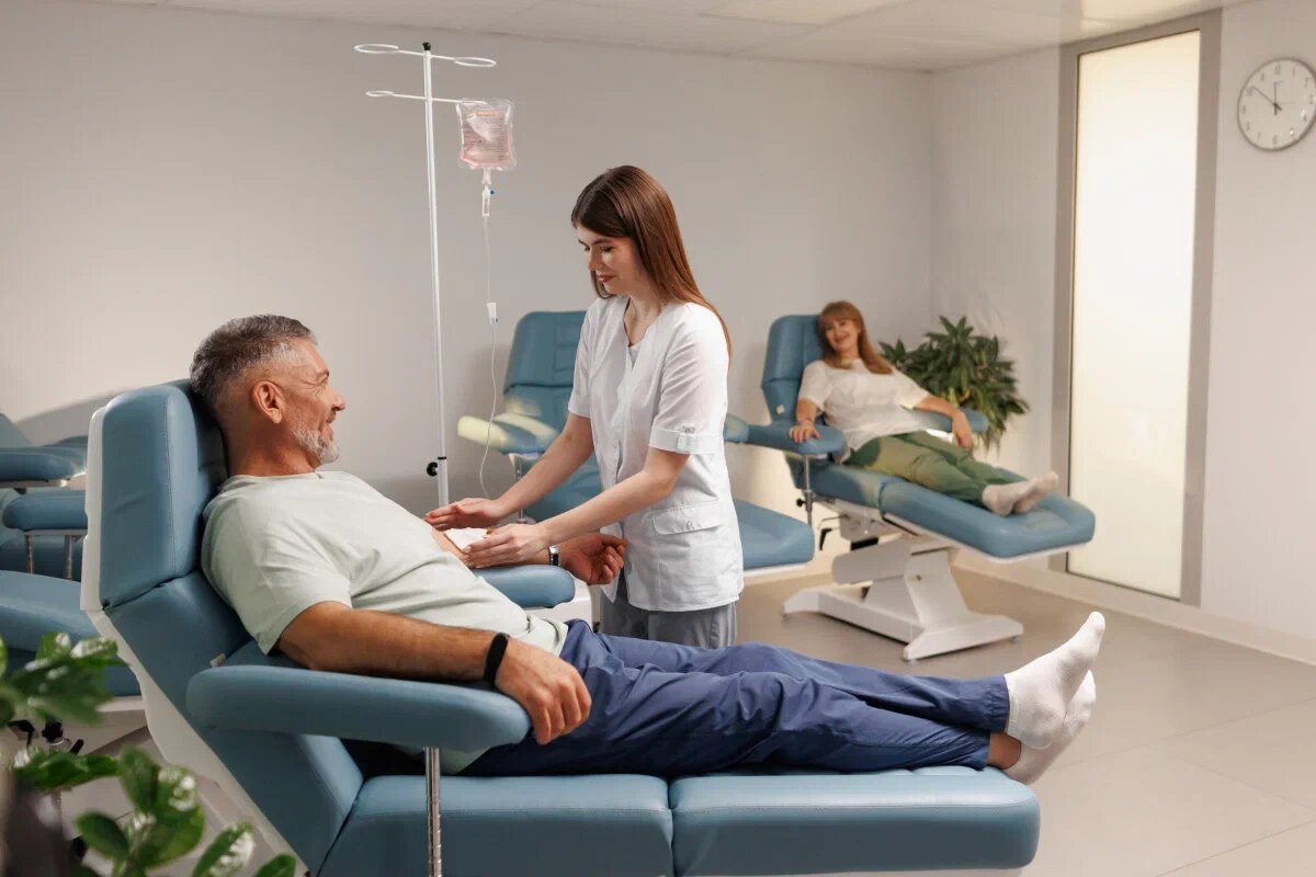 Витаминная капельница — внутривенное введение витаминных и минеральных растворов для улучшения здоровья и омоложения организма. Такой метод позволяет быстро восполнить дефицит витаминов и микроэлементов, поскольку вещества попадают напрямую в кровь, что эффективнее таблеток. Состав подбирают индивидуально с учётом состояния пациента. Капельницы часто назначают для: Общеукрепляющие капельницы с витаминами особенно полезны в межсезонье, при хронической усталости и продолжительных диетах. Процедура проводится под контролем врача, с учётом противопоказаний: Состав коктейлей для витаминных капельниц подбирается индивидуально и чаще всего включает: Гостям санатория доступны также комплексные детокс-капельницы для очищения организма и нормализации работы ЖКТ. Процедура доступна для гостей санатория «Родник Алтая». Все манипуляции проводятся опытным медицинским персоналом с использованием оригинальных препаратов. Курс состоит из 5–10 сеансов. Длительность курса и цена назначаются индивидуальн