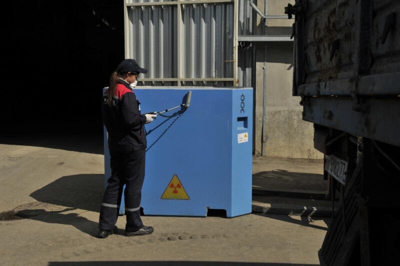 Отходы сюда свозят разные: с атомных станций, авиационных предприятий, из медицинских и исследовательских учреждений — всего около сотни организаций. Причем треть из них — строительные материалы, еще 15% приходится на загрязненный грунт. Что-то сжигают, для этого есть специальная установка под говорящим названием «Факел». Что-то, как металлы, очищают от поверхностного загрязнения и сдают в металлолом. Часть отходов цементируют, кондиционируют и помещают в специальные контейнеры — кубы голубого цвета, после временного пятилетнего хранения передают национальному оператору для захоронения. За год через комбинат проходит около 400 кубометров РАО, или примерно 1500 упаковок.