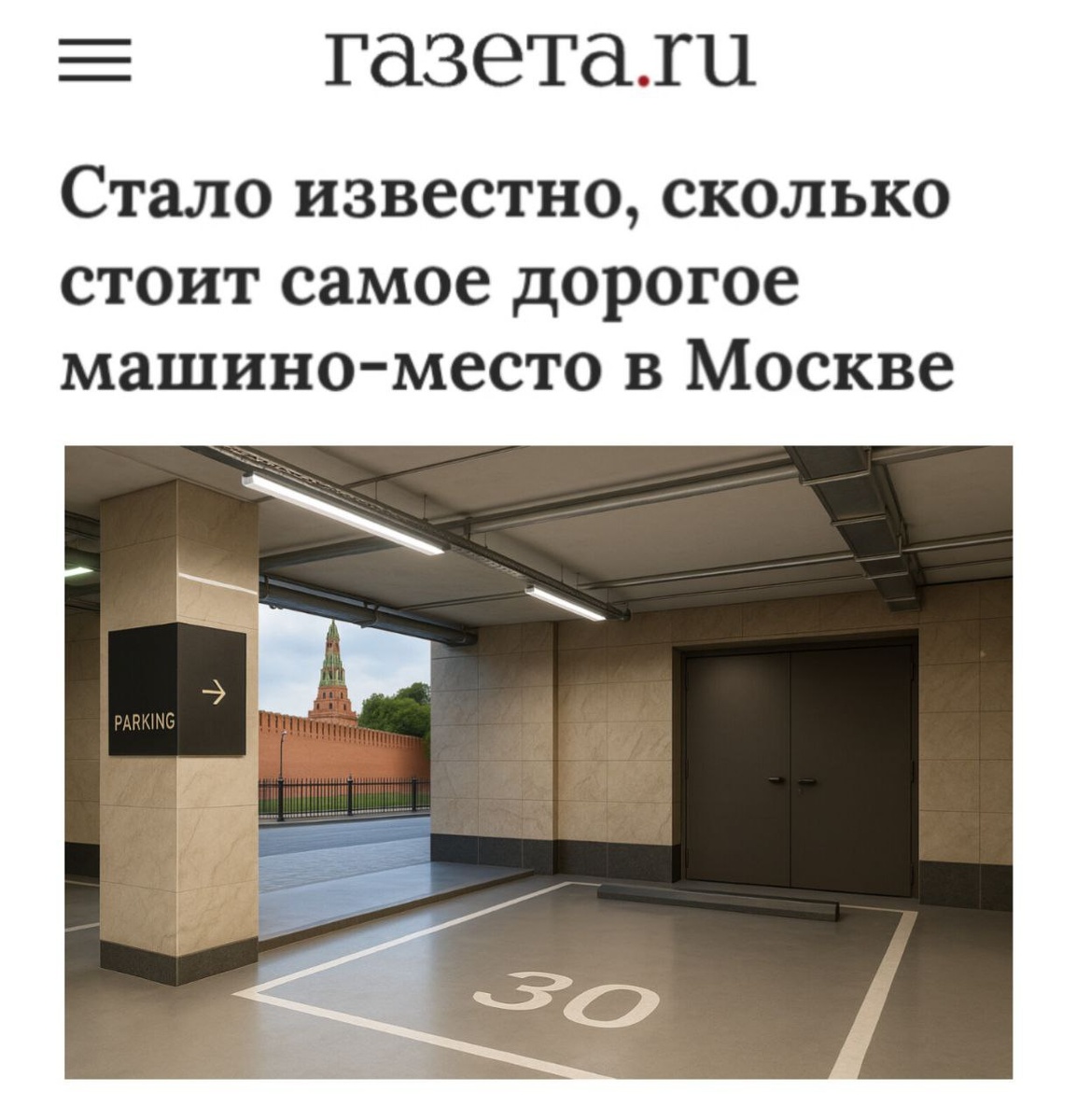 Парковочное место по цене квартиры бизнес-класса в Москве. Парковочное место на минус первом этаже ЖК рядом с Кремлём, включающее парковочное пространство площадью 18,9 кв. м и два келлера, продается за 55 миллионов рублей. Что сопоставимо со стоимостью столичной квартиры бизнес-класса.