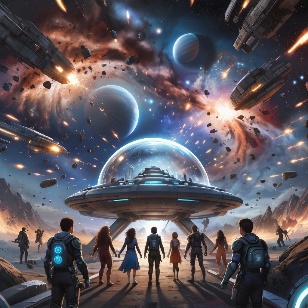 Они бежали, преследуемые страхом и надеждой одновременно. Далеко позади остались разрушенные планеты, сгоревшие города и пепел воспоминаний. Их корабль несся сквозь космос, словно стрела, выпущенная из лука судьбы.
