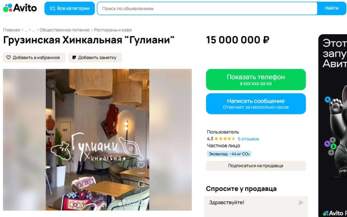 Хинкальную «Гулиани» в Воронеже выставили на продажу за 15 млн рублей