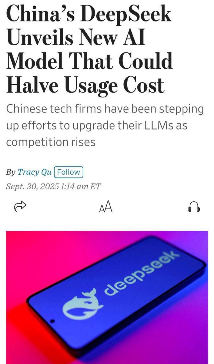 Китайские разработчики снова захватывают рынок — создатели DeepSeek представили новую модель V3.2-Exp, которая превосходит конкурентов