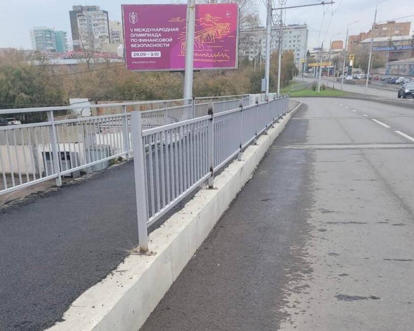 В Красноярске завершили ремонт тротуаров на Копыловском мосту. Об этом рассказали в управлении дорог. Рабочие заменили бордюры и уложили новый асфальт. Напомним, ремонт одной стороны завершился ещё в сентябре, на другой работы затянулись — потребовалась полная замена плит. — На самом мосту продолжаются работы, с ограничением движения по одной полосе. Рабочие выполняют замену деформационных швов, также им предстоит установить перильное ограждение, чтобы обезопасить пешеходов от выхода на проезжую часть. Управление дорог. Ремонт моста начался 11 июня. Из городского бюджета на работы выделили около 100 млн рублей, завершить их планируют до конца октября. фото: t.me/dorogi_krsk