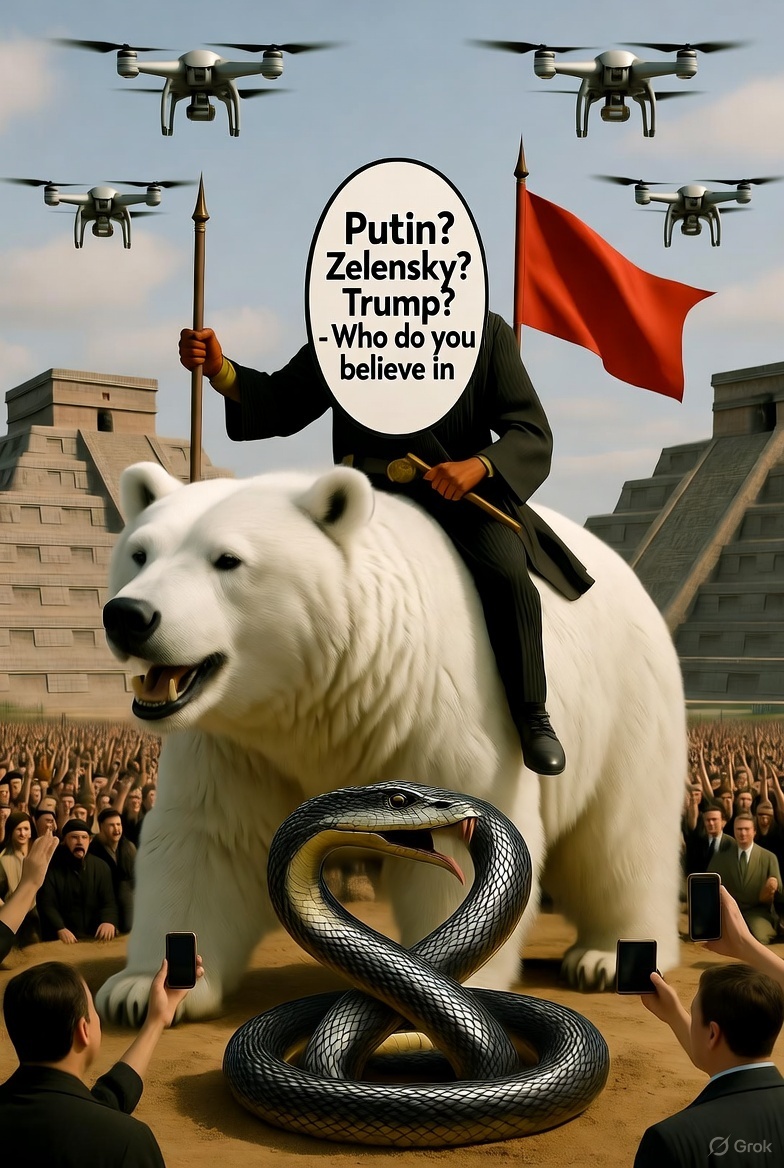 Вышел утром за молоком, а его нет. Стоишь такой с пустой банкой, смотришь на пустую улицу. Потом зайти нужно на сайт суда — связь отключили. Случайность, говорят. Для безопасности, от дронов. И теперь сидишь у окна, смотришь на потухший экран телефона, и вспоминаются индейцы. Говорят, у них были игрушки на колёсиках — маленькие глиняные зверушки, которые могли катиться. Находили археологи эти незамысловатые детские забавы в древних захоронениях. Но почему-то не делали они ни телег, ни экипажей. Странно. Будто знали, что некуда ехать. Или незачем. А ведь была у них целая цивилизация — со своими богами, календарём, городами. У ацтеков существовало предание о Кетцалькоатле — бородатом белом боге, который когда-то научил людей искусствам и ремёслам, а потом уплыл на восток, пообещав вернуться в год «1 Тростник». Говорили, что он ненавидел человеческие жертвоприношения, любил справедливость и мудрость. И вот наступает 1519 год — именно год «1 Тростник» по их исчислению. И появляются у бер
