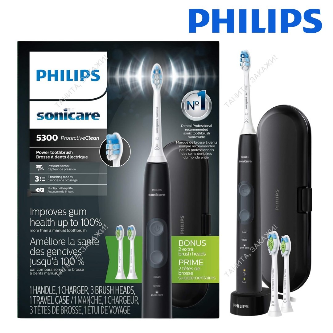 Philips Электрическая зубная щетка Sonicare ProtectiveClean 5300 8700+🚚 C аккумулятором, датчиком давления, 3 режимами чистки, SmartTimer и QuadPacer, с 2 дополнительными насадками, дорожным футляром. 📩 @tanita_sadovnik 🚚 Доставка 4-6 недель 📦 ✅ 100% оригинал 🇺🇸