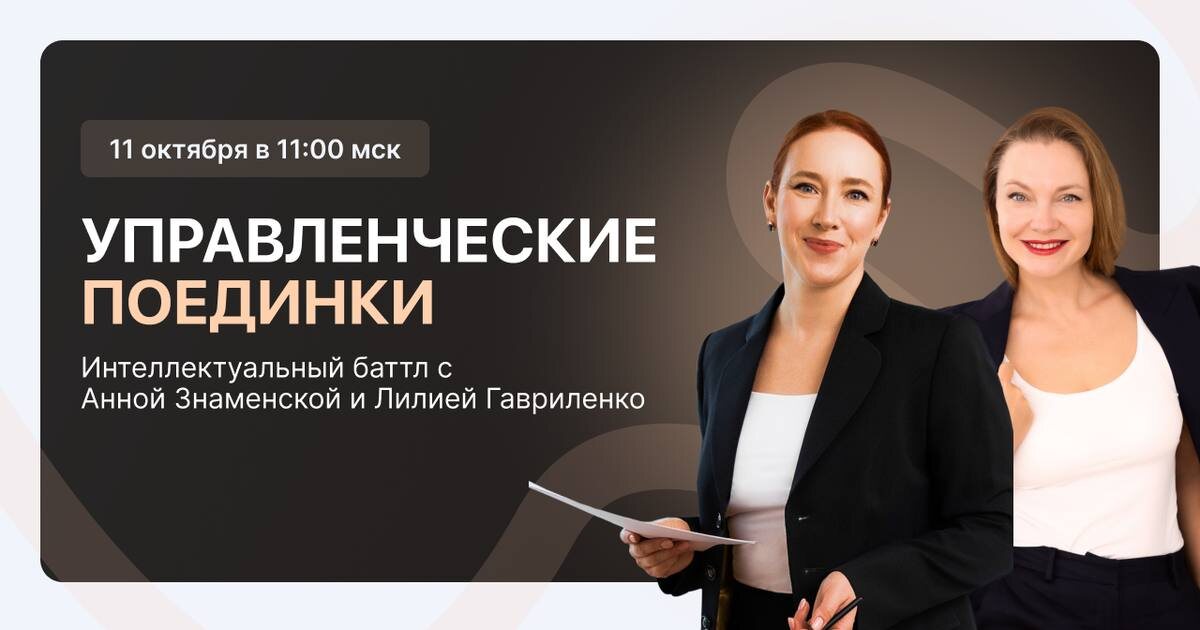 В субботу делаем мой любимый формат! Управленческие поединки! Я знаю, что многие из вас часто тревожатся перед принятием важных решений на работе, боясь совершить ошибку. Поэтому мы решили дать вам возможность потренироваться без последствий для команды и бизнеса — не пропустите ближайшую встречу 👇 Шаг 1: зарегистрируйтесь на управленческие поединки, который пройдут 11 октября в 11:00 мск Поверьте, это самый лучший формат, который дает возможность потренироваться на реальных рабочих ситуациях и получить обратную связь от топ-менеджеров! Как все будет проходить? В поединках будут участвовать по два оппонента-руководителя, а мы – топ-менеджеры, Анна и Лилия, с которой вы уже знакомы по прошлым мероприятиям, будем судьями процесса. Мы будем давать вам интересные управленческие кейсы, которые вы должны решить Шаг 2: решите, как вы будете участвовать. а) активный участник — регистрируется и выходит в эфир в субботу для решения кейса. За ваши ответы Анна и Лиля будут дарить бонусные