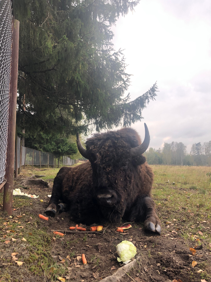 В Ленинградской области, всего в 20 минутах езды от города располагается эко-парк, в котором можно не только погулять по лесу, но и покормить настоящих зубров 🦬 Зубр – одно из древнейших млекопитающих на нашей планете наравне с бизоном в Северной Америке. Это родственные виды, которые похожи внешне. Оба зверя оказались практически на грани уничтожения. На западе на бизонов охотились в XIX веке ради мяса, а в Европе отстрел зубров происходил во время войн, революций в ХХ веке. Их популяция снижалась и из-за вырубки лесов, браконьерства. Все эти события привели к полному исчезновению этих животных в дикой природе европейских лесов в 1927 году. Они оставались только в зоопарках нескольких стран. Встала задача человечества сохранить биологический вид и не допустить его полного вымирания и в неволе. Начали создаваться заповедники, в которых увеличивали поголовье зубров. Токсовский зубропитомник был сделан с той же целью. В 1974 году в Токсово огородили забором часть леса и выделили 5