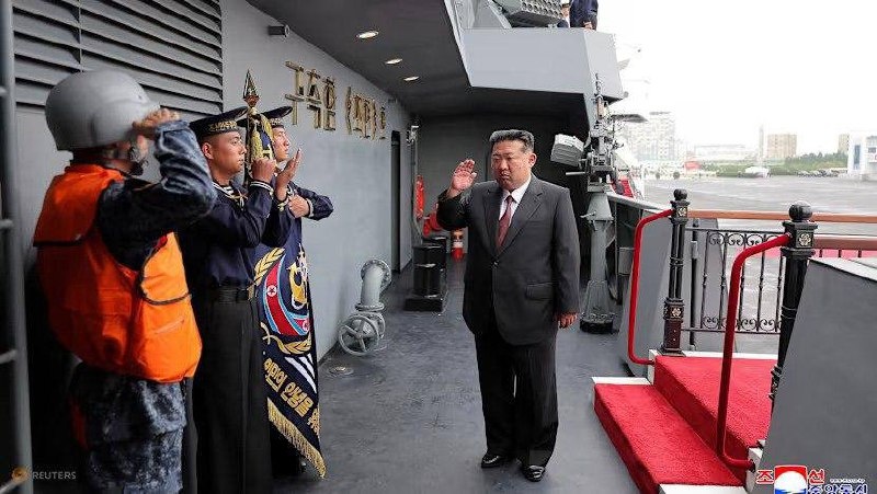 Kim inspects his latest weapon — the destroyer 'Cho Hyun'