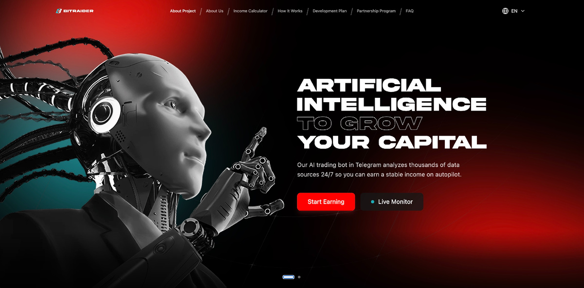 Рынок хайп‑проектов сейчас активно оживляется — используйте эту возможность для входа в качественные проекты на раннем этапе. Добавили на блог еще один перспективный и качественный проект, который работает исключительно через Telegram‑бот, но при этом имеет сайт‑визитку. В случае с Bitraider видно, что команда подошла серьёзно: уникальный и мультиязычный дизайн, подробный маркетинг, партнёрка, FAQ, визуализация сделок, мониторинг в реальном времени, а также удобная pdf‑презентация. Основной функционал сосредоточен именно в боте, где реализована простая навигация, ежедневные отчёты и максимально комфортный интерфейс. Недавний старт и современная подача дают проекту хорошие перспективы, выделяя его из большинства похожих копилок. Проект может стать достойным инструментом для диверсификации портфеля. Чем раньше заходим — тем выше потенциал доходности, но важно всегда помнить о рисках и соблюдать базовые правила инвестирования. Ставьте реалистичные цели и фиксируйте прибыль там, где это возможно.