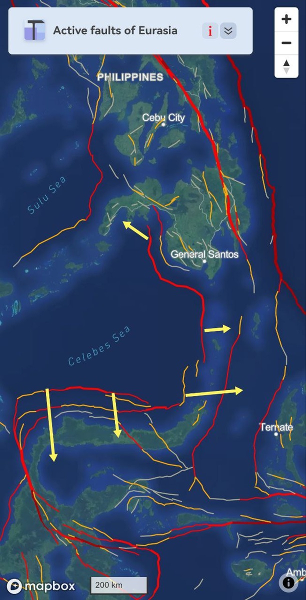 Похоже, что проекция от рифтовой зоны вокруг моря Сулавеси повернулась в облаках против часовой стрелки. В течение 9 дней по зоне есть вероятность сильного землетрясения с магнитудой до М7.5 +/-0.2 В зону угрозы попадают: север острова Сулавеси, Молуккское море и юго-запад Филиппинских островов. ===== It looks like the projection from the rift zone around the Celebes Sea has turned counterclockwise in the clouds. Within 9 days, there is a possibility of a strong earthquake with a magnitude of up to M7.5 +/-0.2 in the zone.