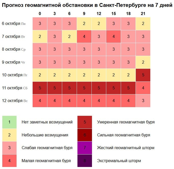 🧲🧲🧲 Прогноз магнитных бурь на неделю 🧲🧲🧲 Ближайшая сильная магнитная буря ожидается 7 октября. Ее сила составит 4 балла. В этот день возможно незначительное ухудшение самочувствия: головная боль, слабость. Может снизиться внимание и работоспособность, появиться сонливость. Старайтесь не перенапрягаться, больше отдыхайте, гуляйте на свежем воздухе🍂🍁🍃