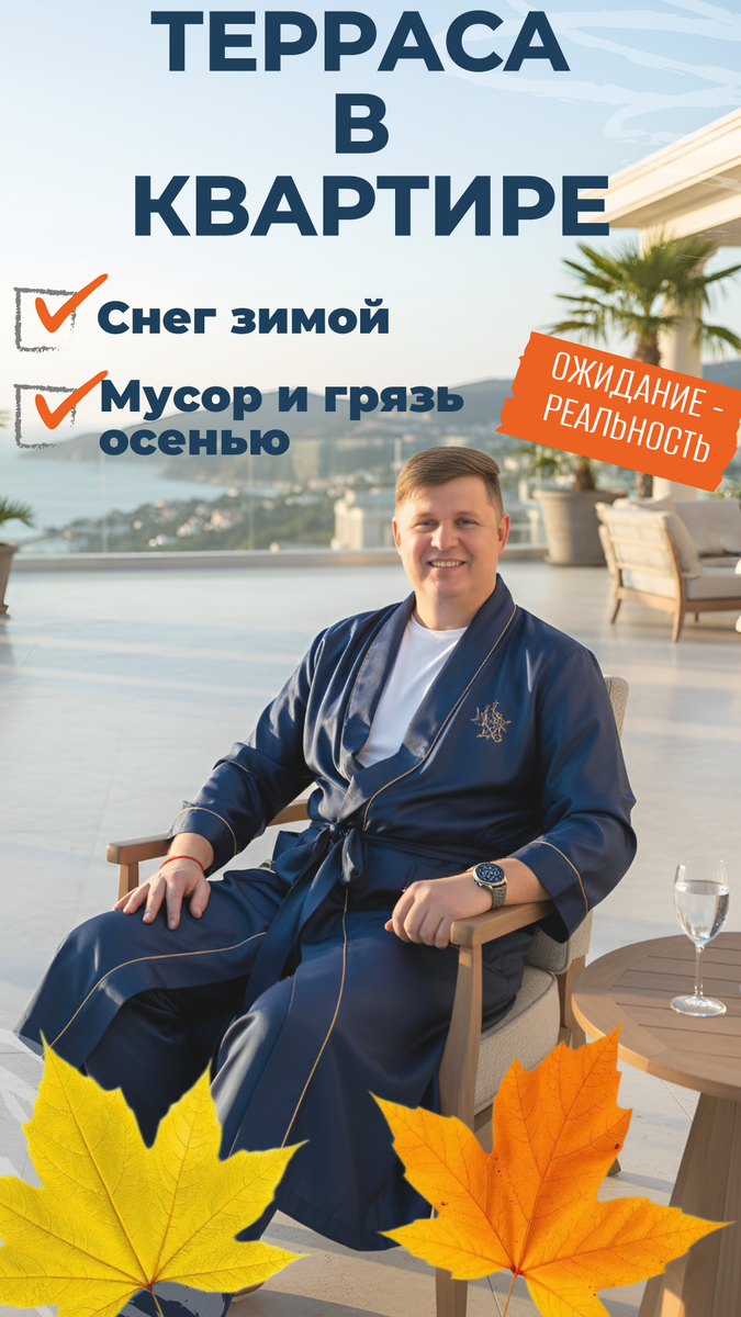 Когда смотришь на проекты с большими террасами, кажется, что это мечта: завтраки на свежем воздухе, шезлонг летом, уютные вечера. Но в реальности терраса в квартире имеет свои минусы, и их важно учитывать ещё до покупки или ремонта. ❌ Минус 1 — климат. Зимой терраса практически не используется, а в межсезонье часто мешают дожди, ветер и грязь. ❌ Минус 2 — уход. Плитка, дерево или композит на террасе требуют регулярного ухода. Пыль, листья, снег, лужи — всё это придётся убирать. ❌ Минус 3 — теплоизоляция. Комнаты, примыкающие к террасе, часто холоднее. Особенно если под террасой — улица или нежилое помещение. ❌ Минус 4 — соседи сверху. Если терраса не последняя, то велик риск протечек с чужой террасы, или наоборот — ваши дренажи могут мешать соседям. ❌ Минус 5 — приватность. Терраса может оказаться «на виду» у соседей из верхних этажей, и тогда про уединённость можно забыть. #дизайнквартиры #терраса #авторскийнадзор #интерьердляжизни #ремонтквартиры #дизайнерсоветует