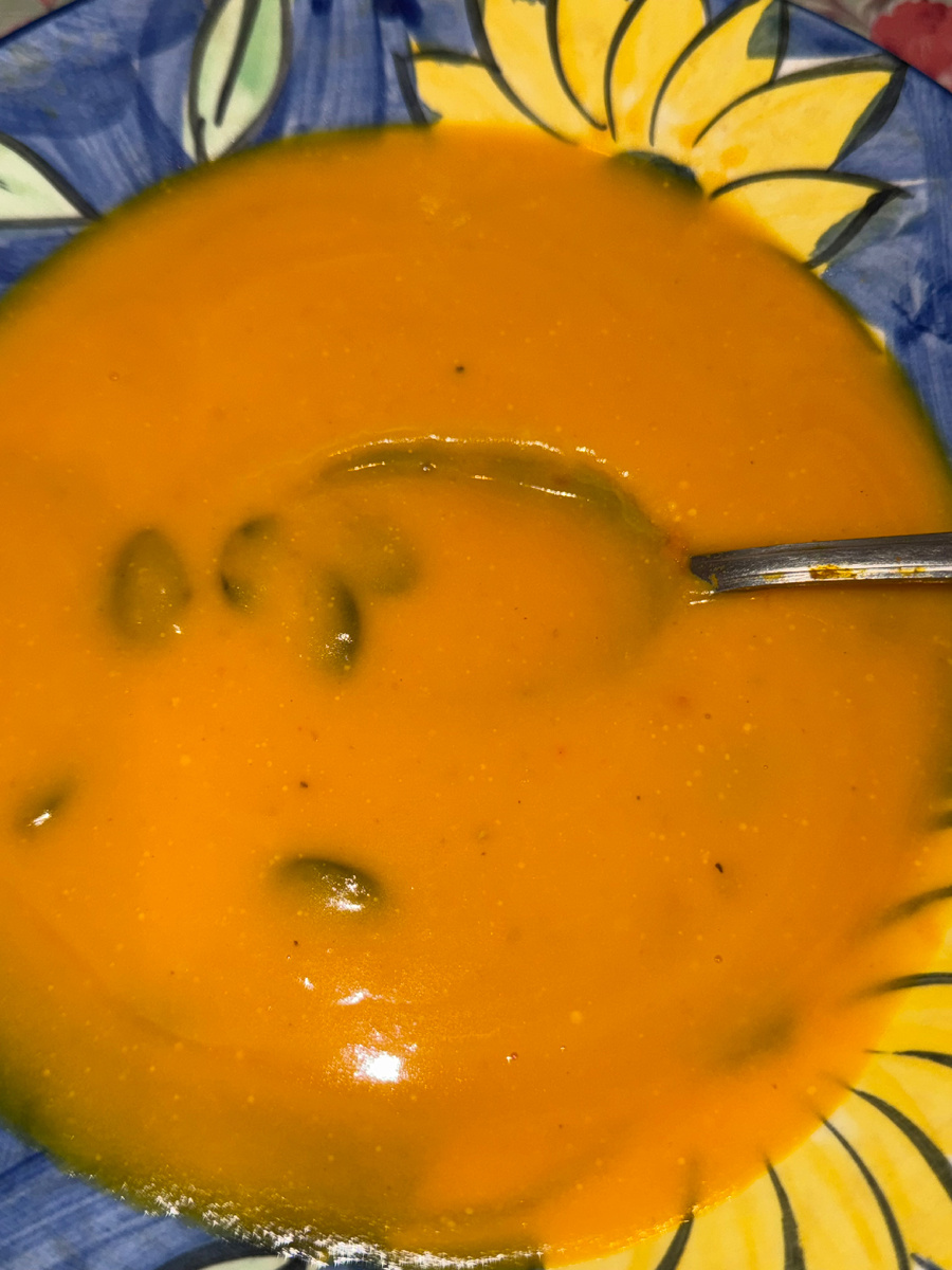 После закипания снимаю суп с огня и даю ему настояться пару минут, чтобы сливки полностью раскрыли свой вкус. Подаю горячим, в глубоких тарелках, посыпав сверху горстью обжаренных тыквенных семечек — они добавляют хруст и подчёркивают осенний вайб. Никаких лишних добавок вроде сыра или сметаны — вкус тыквы и сливок и так совершенен.