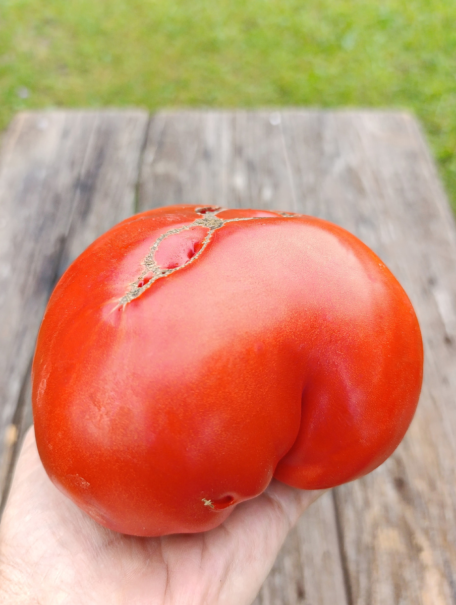 Индетерминантный, 1.6-1.8м, куст крепкий, красные очень крупные мясистые плоды, 300-750 грамм, ароматные, настоящего классического вкуса, с длительным плодоношением. Мелких плодов практически не было. Сорт произвел очень приятное впечатление. Честно говоря не надеялась на такой вкус и размер в это дождливое и холодное лето.