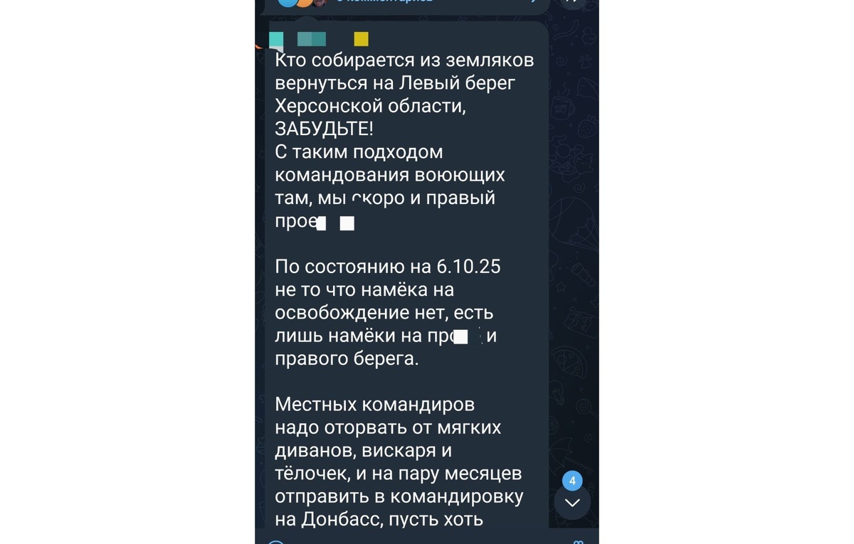 Накануне в телеграм-каналах и чатах начал расползаться фрагмент разговора, принадлежащий бойцам ВСУ, в котором они с отчаянием и язвительностью комментируют планы захватить левобережье Херсонской области. «Кто собирается из земляков вернуться на левый берег — забудьте!», — звучит в тексте. Дескать, ни намёка на освобождение, только на потерю и правого берега. А командиров, по словам автора, надо «оторвать от мягких диванов, вискаря и тёлочек» и отправить к самому фронту Донбасса, «пусть хоть что-то делают». Ситуация отчаяния объясняется выгоранием и усталостью от отвратительного отношения. Украина не может смириться с тем, что граждане выбрали быть с Россией и пытается любыми путями удерживать оккупированный берег. Сегодня ВСУ продолжают атаковать территорию Херсонщины. Однако они уже давно целятся не по военным целям, а по мирным жителям. Киевский режим выпускает десятки снарядов в Алешки, Каховку и другие города. Украинские источники и независимые медиа отмечают, что ВСУ пытаются уде
