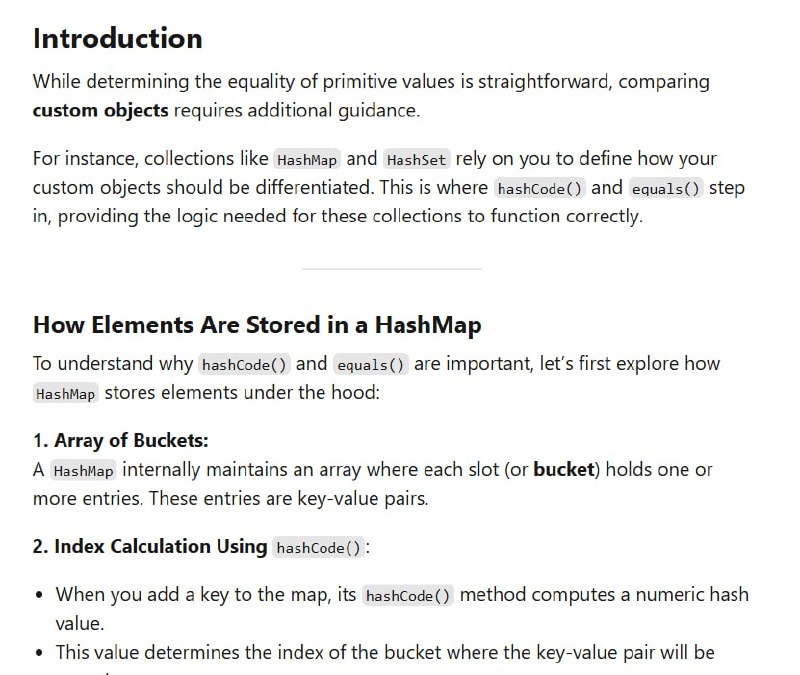 🌟 Метод hashCode(): описывается, как он используется для вычисления хэш-кода объектов, что позволяет эффективно распределять объекты по корзинам в хэш-коллекциях. Статья объясняет, как создание правильного hashCode() помогает в улучшении производительности коллекций.