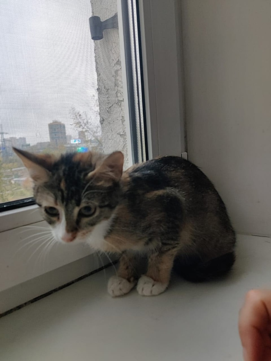 В подъезде на Байкальской с утра сидит котенок, подбросили