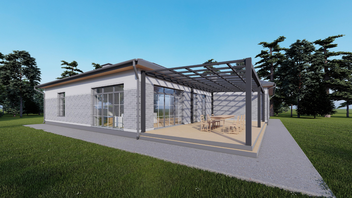 Представляем вашему вниманию проект загородного дома от ПСК Градиент, который сочетает в себе всё необходимое для комфортной загородной жизни. Общая площадь дома составляет 268,79 м², что делает его идеальным для большой семьи или тех, кто ценит простор и уют. Дом выполнен в одноэтажном формате, что упрощает планировку и делает его удобным для проживания. Черновая высота помещений - 3 метра, что создает ощущение простора и позволяет реализовать любые дизайнерские решения. Отделка штукатуркой придает фасаду современный и элегантный вид. В доме продуманы важные зоны и помещения: - Гардероб (7,81 м²) и две кладовые (4,94 и 4,45 м²) обеспечивают запас для хранения вещей и продуктов. - Игровая (20,28 м²) и кабинет (6,52 м²) позволяют детям и взрослым иметь личное пространство для увлечений и работы. - Три спальни по 14,30, 20,11 и 14,41 м² легко вместят всю семью. - Просторная кухня-гостиная (59,14 м²) становится центром семейных встреч. - Дополнительно есть терраса площадью 48,01 м² для о