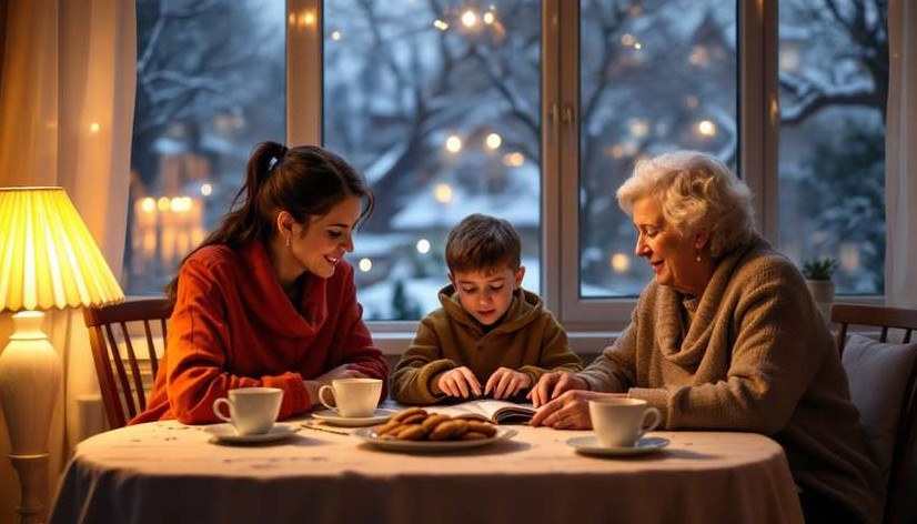 Тёплый пар от чая поднялся вверх, смешался с голосами других гостей — кто-то засмеялся в соседней комнате, кто-то включил музыку. Что-то щёлкнуло в душе, будто разблокировалась давно забытой дверцей — не просто воспоминания о праздниках, а чувство, что впереди ещё будет много ужинов, разговоров и — самое трудное — согласия.
