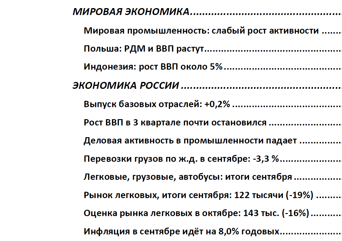 - ЖД перевозки грузов в сентябре продолжили падать (-3,3%), но темпы падения замедляются.