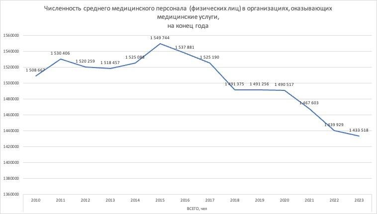 В медицинской среде давно обсуждается проблема нехватки кадров. И если среди самих медработников есть понимание, что нехватка специалистов ощущается не только среди врачей, но и специалистов среднего звена (медицинских сестер, акушерок, фельдшеров), то среди обычного населения кадровый дефицит медицинских сестер остается незамеченным. Почему это происходит и как это влияет на работу медицинских организаций? Дефицит среднего медперсонала сейчас оценивается в десятки тысяч специалистов. С 2021 года после нескольких лет стабилизации вновь началось снижение численности медперсонала среднего звена, а за 2022 год этот показатель уменьшился на ~28 тыс. человек Какие факторы приводят к такой ситуации? Стереотипная роль «медсестры как помощника» в обществе при фактическом повышении стандартов, внедрения новых практик, роста роли и ответственности снижает мотивацию Отток специалистов повышает нагрузку на тех, кто остаётся, что усугубляет выгорание и вызывает цепную реакцию ухода. Влияют и внеш