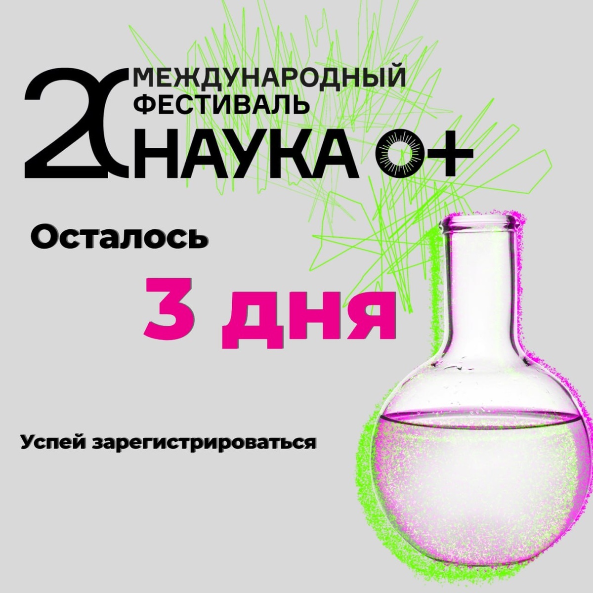 3 дня до Главного образовательного события🧬 9-11 октября 2025 года в Курском государственном университете пройдет XX Всероссийский фестиваль науки НАУКА 0+ ⏩Успей зарегистрироваться по ссылке ❤️ КГУ | Подписаться