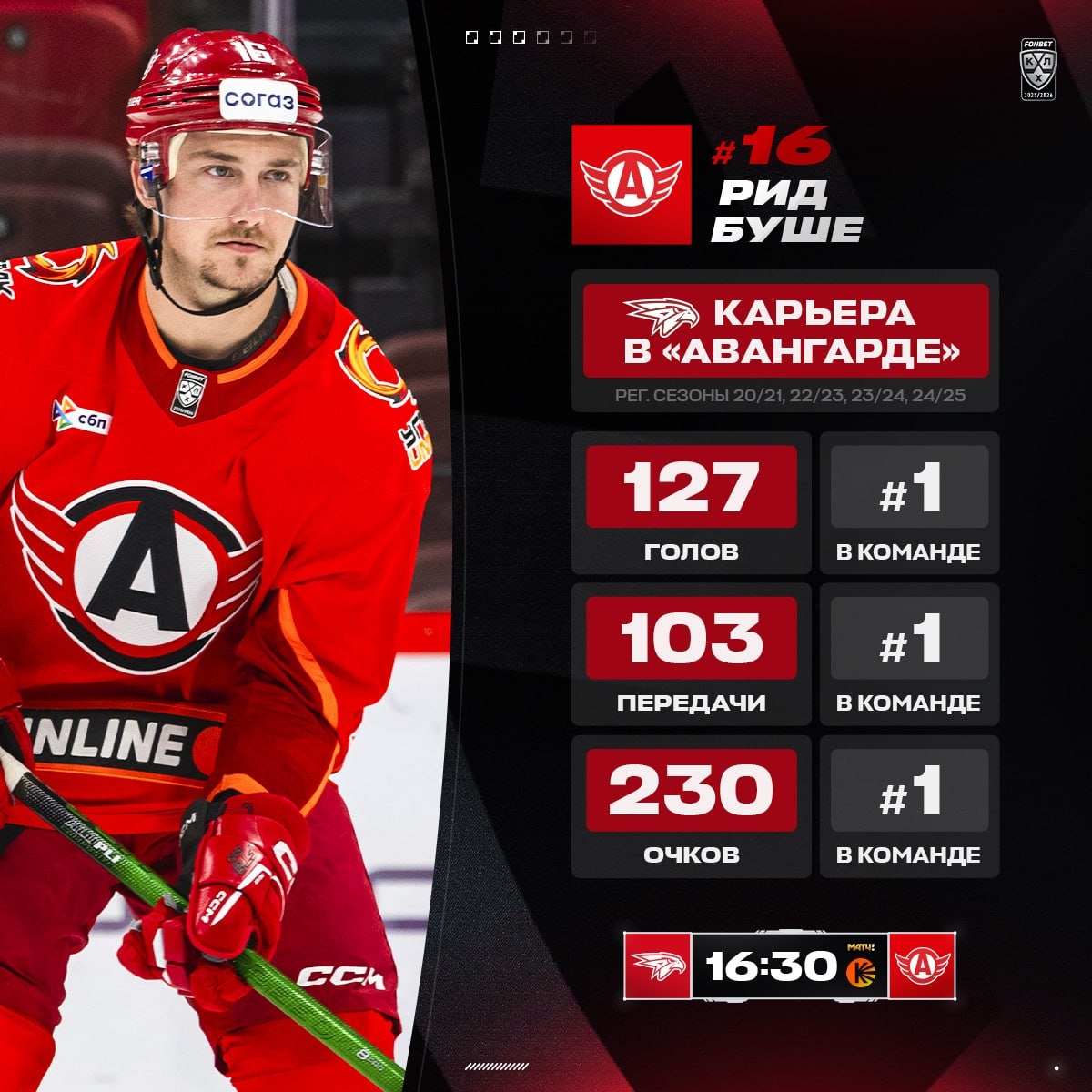 Рид Буше снова в Омске, но уже не как «ястреб». За четыре сезона в «Авангарде» американский нападающий был лучшим игроком команды. Каким будет его возвращение этим вечером? 🦅 х 🚗 16:30 мск 🎙