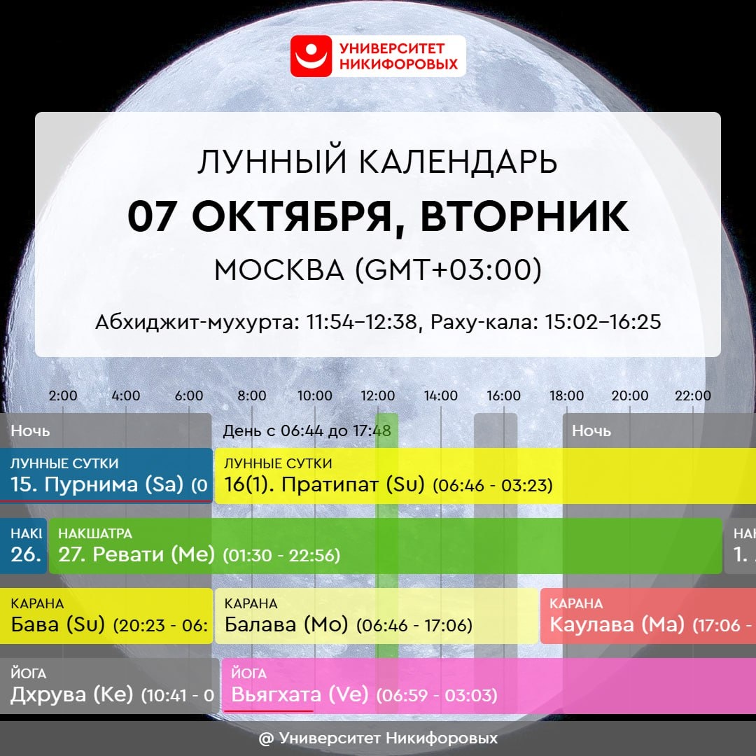 7 ОКТЯБРЯ, ВТОРНИК Энергии дня несколько противоречивые, особенно это может ощущаться в утренние часы до 10:00. Далее момент становится более благоприятным, он поддержит активную деятельность, в том числе связанную с коммуникациями и решением задач, требующих логики и поиска точек пересечения. Одновременно день подходит для завершения дел и нанесения последних штрихов. Луна заканчивает прохождение зодиакального круга, это естественным образом подводит нас к подведению итогов: напишите список того, что вам удалось выполнить, сверьтесь с ранее намеченными планами, отметьте галочками то, что получилось воплотить в жизнь. Момент хорош для творческой деятельности и благотворительности, он поддержит любое обучение – знания будут усваиваться легче. Это хороший момент погрузиться как в мир точных структур, так и более тонкого характера.