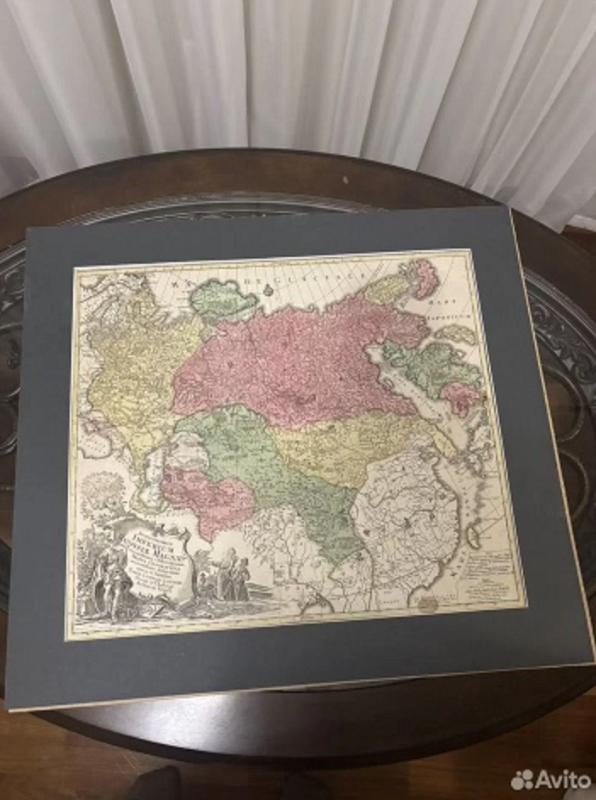 Атлас включает 126 рукописных карт с цветной раскраской, на которых изображены Россия, Китай, Монголия и другие страны. Издание выполнено в кожаном переплете размером 49 на 37,5 см и считается образцом картографического искусства XVIII века. Гоманн был одним из самых выдающихся граверов и картографов своего времени. После его смерти его дело продолжили наследники под брендом «Наследники Гоманна». Продавец уверяет, что атлас подлинный и хорошо сохранился, что делает его ценным для коллекционеров и любителей истории. Особое внимание привлекает «Карта Российской Империи» 1750 года, созданная Тобиасом Конрадом Лоттером. Эта карта подробно показывает географию России времён Елизаветы Петровны и украшена декоративными элементами, такими как изображения амазонки и восточных торговцев. Оригинальный размер карты — 52,3 на 62,3 см. Она выполнена в технике резцовой гравюры и раскрашена акварелью. Цена этого уникального экспоната составляет 410 тысяч рублей. Карта Российский империи. XVIII век Зав