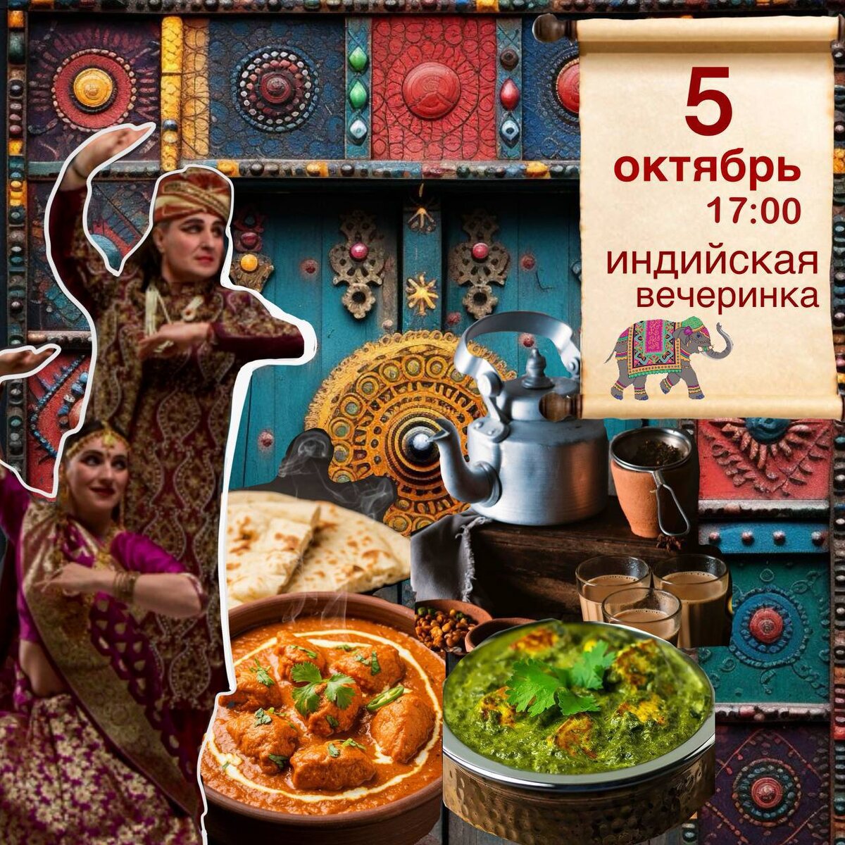 Перенос!!! Мастер-класс индийской кухни и индийского танца! 🔥🔥🔥 Вечеринка с фотозоной и крутыми гостями☀️ 🔥18 октября в 17 часов!!пройдёт очень интересный мастер-класс,где мы с вами будем готовить под руководством шефа Антона и наших гостей,знающих все про Индию и ее культуру 🔥Смотреть индийский танец и даже сами выучим несколько движений в индийском духе! 🔥А еще театр индийского танца «Таранг» предоставит нам фото зону с сари тюрбанами и другими прикольными индийскими вещами. Можно перевоплотиться😀 ✅О наших гостях: Светлана Нигам и Алексей Дульнев - лучшие исполнители Болливуда в России! Профессиональные танцоры и создатели стиля Bolly_Nuevo, сочетающего индийские и кубинские традиции танца. 💛Итак Что в меню: -ПАЛАК ПАНИР (жареный сыр в индийских специях) -ЛЕПЕШКИ РОТТИ(пресные,жарятся без масла и подходят как дополнение к любому горячему) -БАТЕР ЧИКЕН МАСАЛА яркое блюдо из курицы,его обожают взрослые и дети! Во всех ресторанах Индии его готовят,хит,достойный быть приготовле