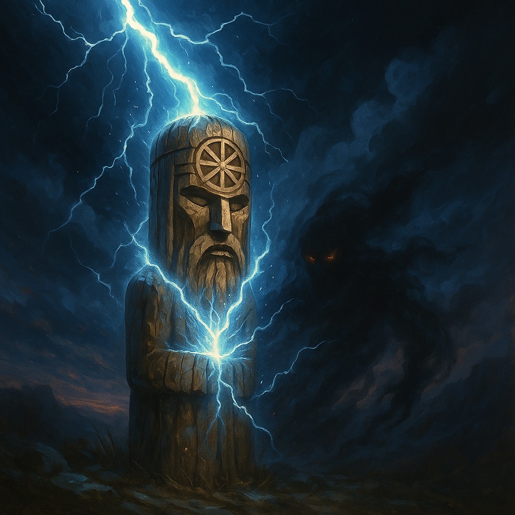 Гроза. Воздух дрожит от напряжения, небо горит белыми вспышками, и где-то далеко, в самой глубине облаков, будто кто-то рубит мир надвое огненным мечом. Для древних славян это не было просто природным явлением. Каждая молния — это удар бога Перуна, каждый раскат грома — его боевой клич, а каждый сожжённый дуб или расщеплённый камень — тело убитого демона.