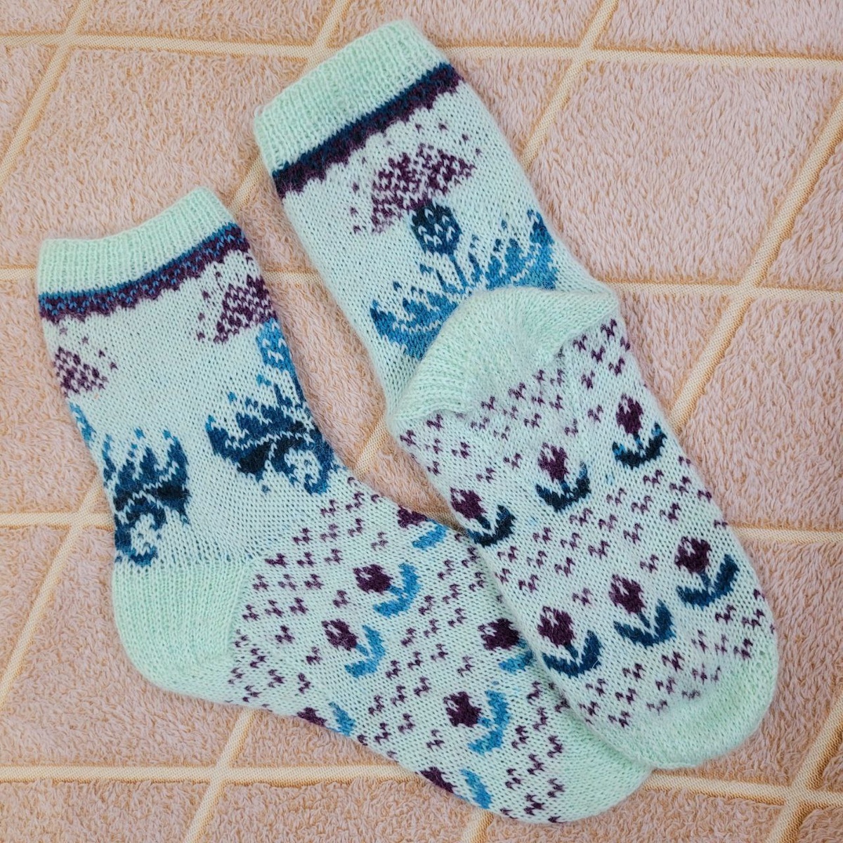 Сегодня хочу поделиться радостной новостью: наконец-то довязала замечательные носки "Чертополох" по мастер-классу Ирины Ким 🌿☺️ Фото прикладываю, оцените, насколько они удались!