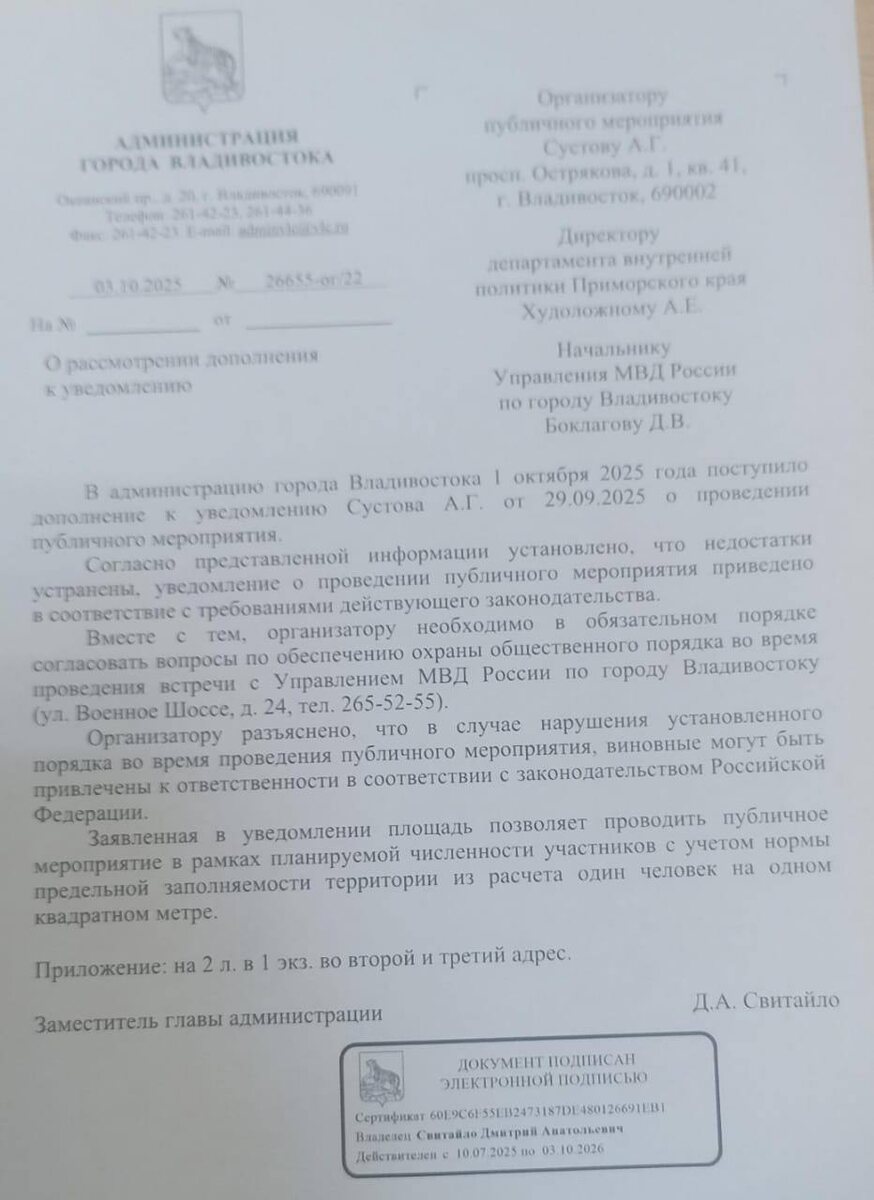 🗣Во Владивостоке в мэрии разрешили провести митинг против повышения утильсбора на автомобили в РФ