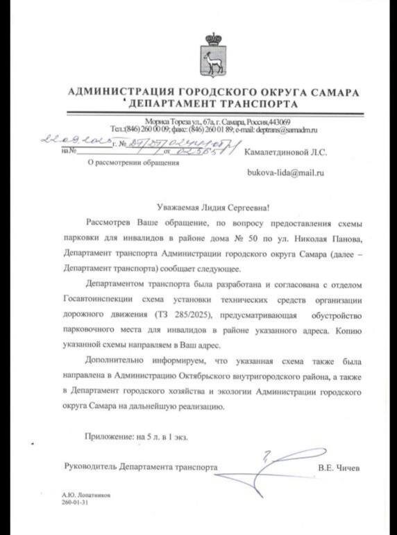 🅿️ Самарский квест: одно место для особого ребёнка В России любят говорить, что любят детей. Особенно любят детей с особенностями развития. Только вся любовь этих любвеобильных людей всегда на словах. Очередное доказательство тому жительница Самары Лидия Камалетдинова, которая вот уже четыре месяца пытается получить одно-единственное парковочное место, для ребёнка-инвалида, возле своего дома на Николая Панова, 50 Дом, к слову, не маленький. 11 подъездов, 18 этажей, первые два этажа офисы. Соответственно, двор забит чужими машинами круглосуточно Лидия сделала всё по закону: 16 июня подала заявление в администрацию района. 23 июля получила ответ, что: «Всё согласовали, схема есть, направили в УК Оникс». Меньше чем через месяц, 11 августа, прошла встреча в УК, где сказали: «Знаки уже куплены, ждём установки, выберите точку». 19 августа вместе с председателем УК было выбрано место, пообещали всё сделать за неделю. Но вместо «Сделать» началась знакомая каждому самарцу рутина: звонки → «