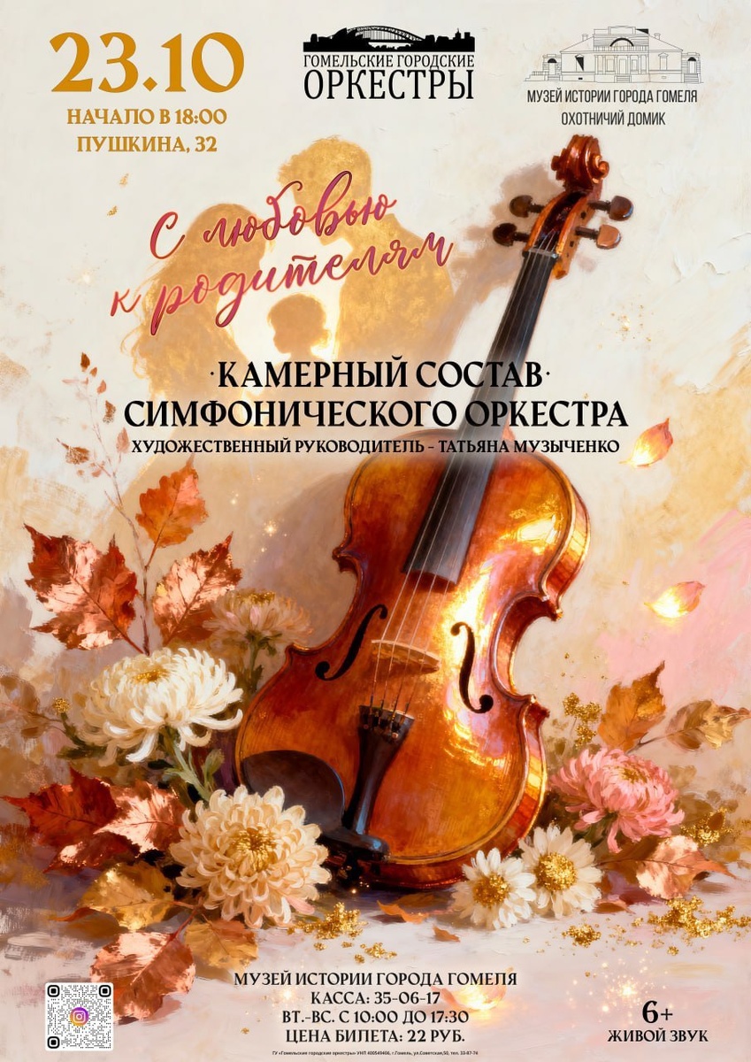 Камерный состав симфонического оркестра приглашает 23 октября на душевный концерт, посвящённый неделе родительской любви.