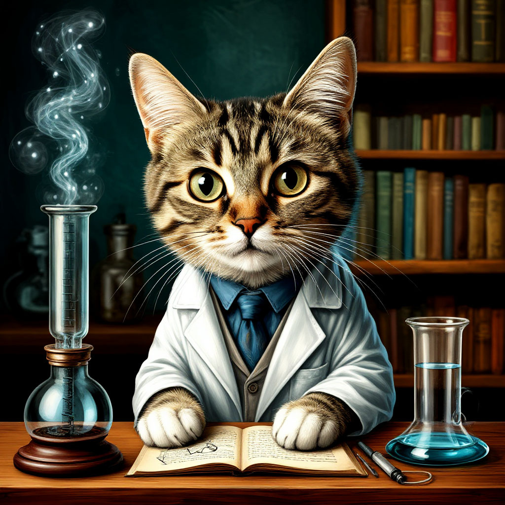 Эта история, хоть и не претендует на научную точность, рассказывает о забавном случае, который привёл к открытию йода, благодаря помощи пушистого друга. В далёком 1811 году французский учёный химик-технолог и фармацевт Бернар Куртуа занимался химическими опытами, а его любимая кошка, как это иногда бывает, сидела у него на плечах. Вдруг в дверь постучали. Стук был громким, и кошка, испугавшись, прыгнула с плеча. Это оказалось не самым удачным решением, так как она разбила стоявшие на столе колбы с химическими веществами. Тем не менее, из этой ситуации вышла польза. В одной из колб находилась спиртовая настойка морских водорослей, а в другой — сернокислая соль железа. При столкновении колб их содержимое смешалось, началась яркая химическая реакция, и появилось облако дыма. Кошка ещё больше испугалась и забилась в дальний угол. Когда дым рассеился, учёный заметил на столе коричневые кристаллы, которые позже стали известны как "йод". Так кошка внесла свой вклад в науку и медиц