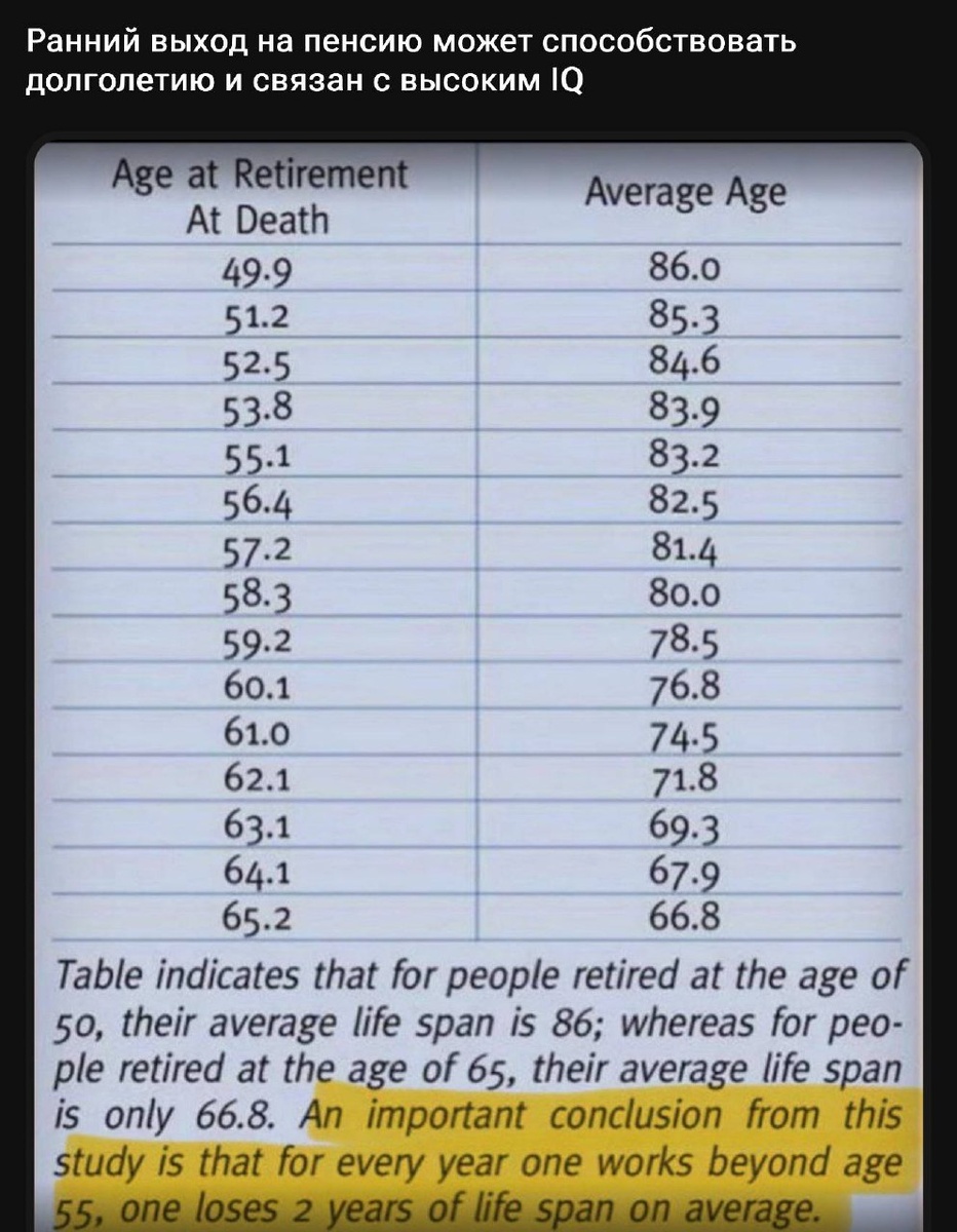 В любом случае, это интересное наблюдение заставляет задуматься о том, как мы планируем свою жизнь и карьеру. Как вы считаете, стоит ли стремиться к ранней пенсии, даже если это противоречит общепринятым нормам и ожиданиям?