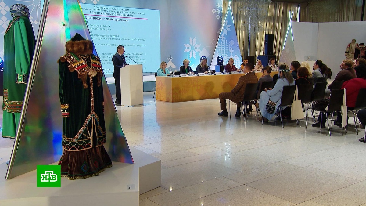 [ Смотреть видео на сайте НТВ ] В Красноярске проходит первый Всероссийский форум коренных малочисленных народов. Он объединил жителей дальнего севера, творческие коллективы и исследователей. Их цель — не только показать своеобразие уникальной культуры, но и привлечь к ее изучению всех желающих. Мастер-классы по вышивке волосом оленя и резьбе по кости собрали столько желающих в холле концертного зала, что не всем досталось место. Зато послушать истории о жизни в тундре из первых уст смог каждый. Например, нганасаны не ели грибы, потому что это пища оленя, а олень — это друг. Также можно увидеть игрушки из клюва гуся и оленей шкуры, которые шили себе ненецкие девочки. Елена Евай, научный сотрудник Таймырского краеведческого музея: «Если ты раскидала игрушки, то через них может прийти злой дух и навредить мне, вселиться. Мы должны были игрушки прятать, они тоже должны были спать. Это своего рода воспитание детей». Все эти секреты мастерства, традиции, обычаи составляют нематериальное этн