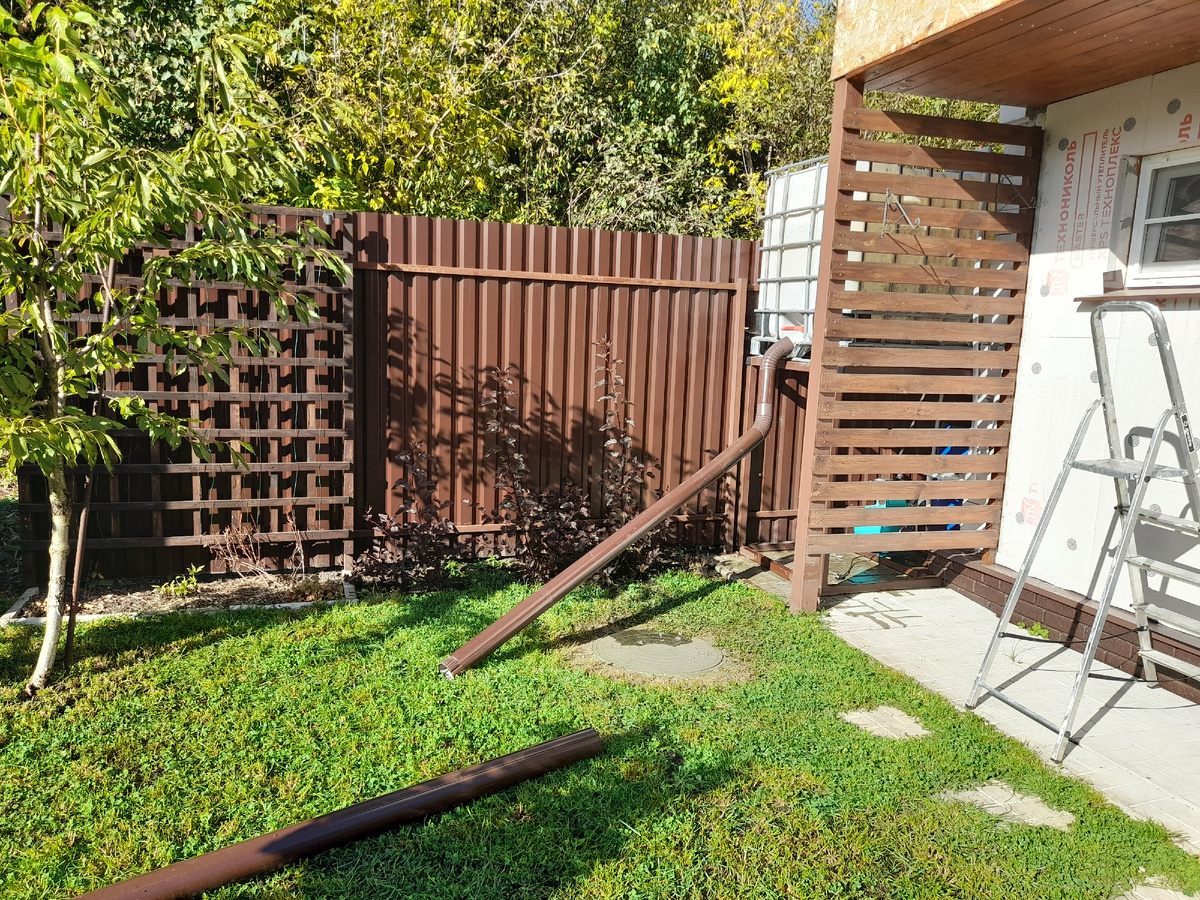 Теперь бочка вровень с забором. Моей рассаде будет доставаться больше света и обшивка дома из-за плотного прилегания к нему еврокуба пострадает в меньшей степени. Остается только перепаять трубы, но это уже весной.