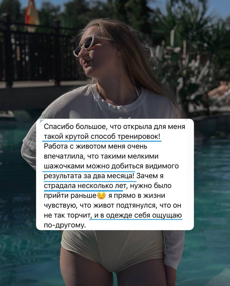 ЗАЧЕМ Я СТРАДАЛА НЕСКОЛЬКО ЛЕТ, НУЖНО БЫЛО ПРИЙТИ РАНЬШЕ у меня были такие же мысли, когда я только начинала путь в фитнесе: я перепробовала всё, что только можно: бег, силовые с железом, кач пресса до боли, хлою тинг, интервальное голодание.. – но живот не уходил, спина болела, и тело всё равно выглядело дряблым тогда я ещё не понимала, что дело не в сложности тренировок, а в том, что мне нужно другое сейчас всем своим красоткам я сразу подбираю тренировки под их тело и ситуацию недавно ко мне обратилась Оля с желание подтянуть низ живота, убрать второй подбородок и раскрыть плечи 🔴как всегда, мы начали с диагностики осанки и сразу стали понятны причины проблем: прогиб в пояснице, вытянутая шея, тело будто падает вперёд - работать «по классике» нет смысла я составила короткие тренировки, чтобы Оля могла тренироваться сама и мы начали работу 🔡 каждую неделю Оля присылала видео, я корректировала технику, она отрабатывала, и даже во время командировок она не бросала тело - дела