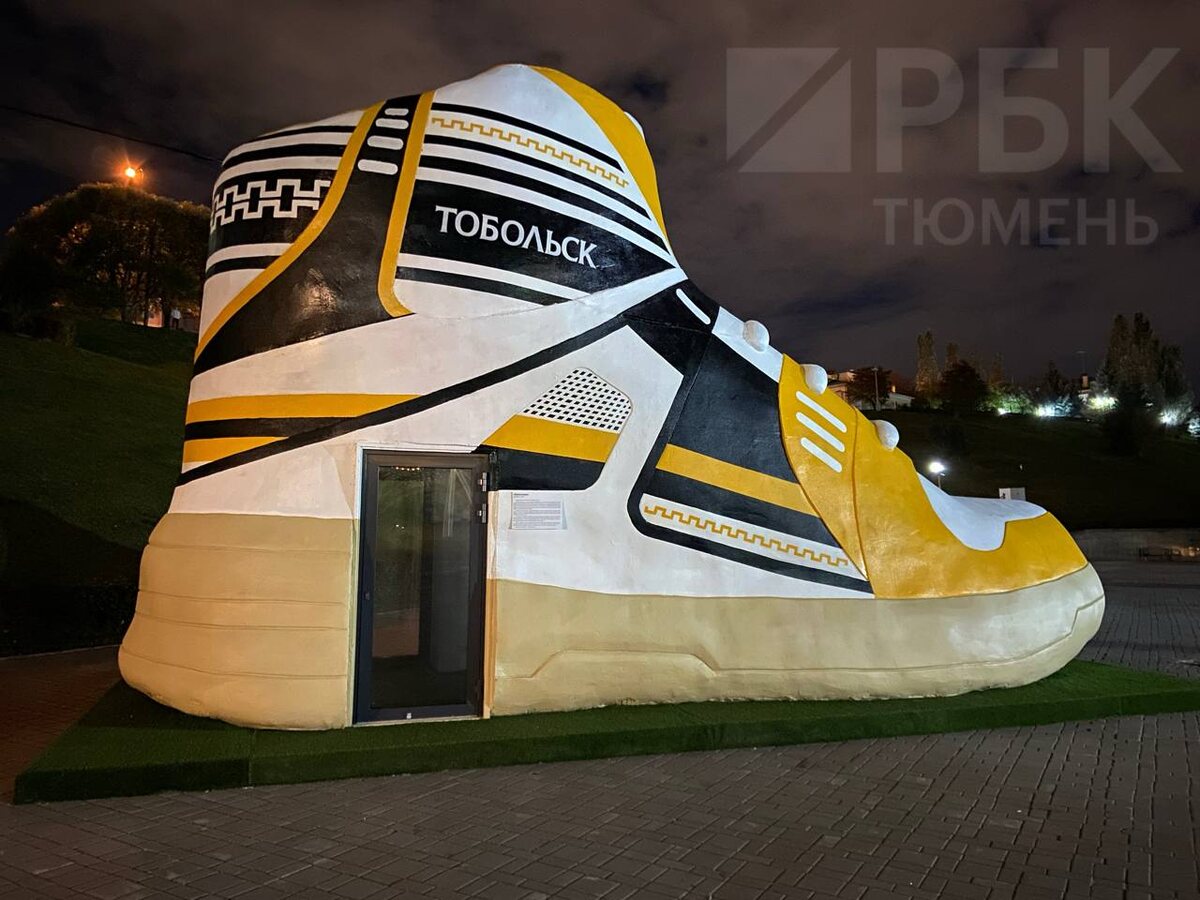 Арт-объект воспроизводит силуэт спортивной обуви, выпускавшейся Тобольским комбинатом. В тот момент она символизировала попытку внедрить новейшие технологии своего времени в повседневность граждан. Многие жители Тобольска говорили, что их невозможно было «сносить» или порвать, и у кого-то они хранятся до сих пор, — рассказали в компании.