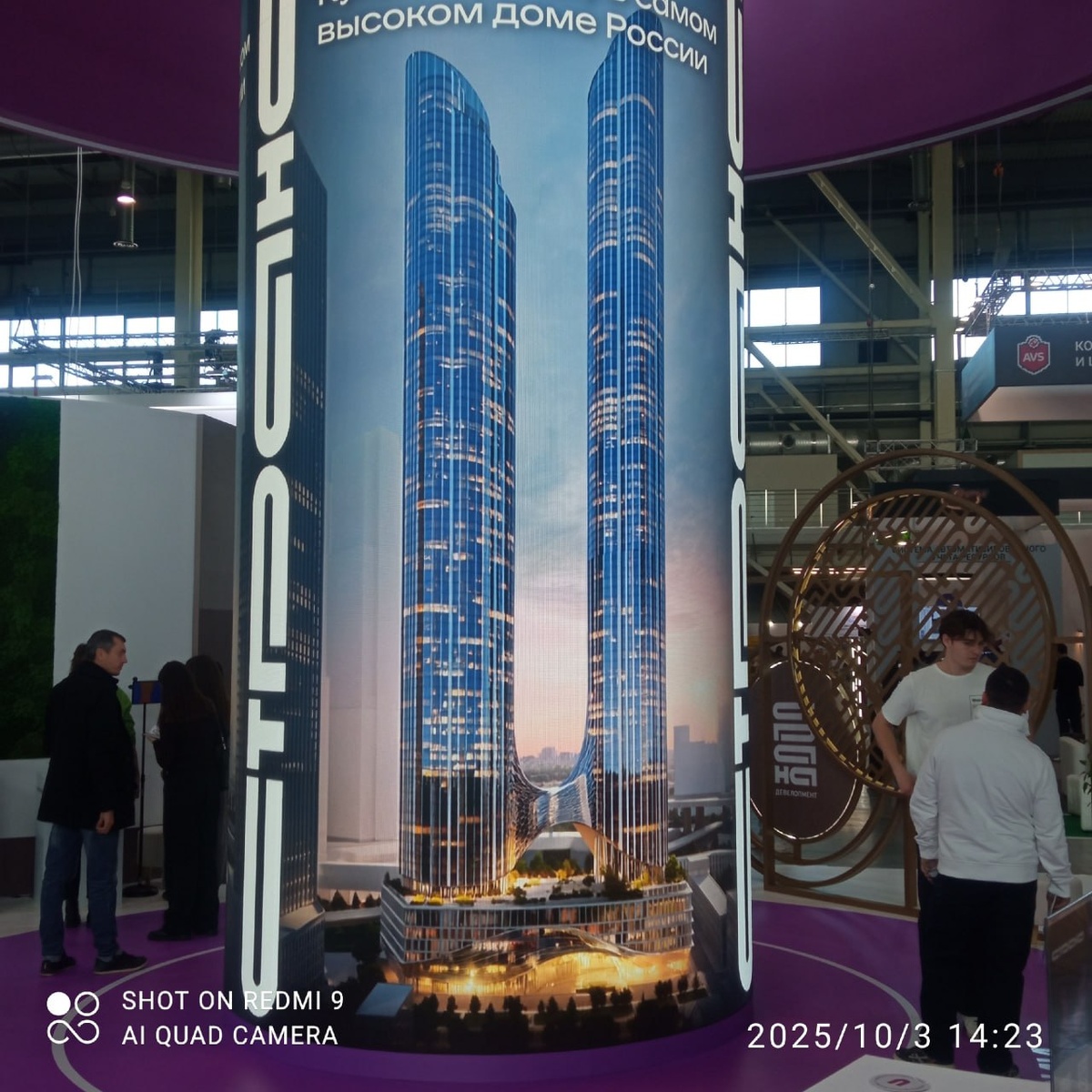 В ответ на пост Фотографии и комментарий от наших дорогих подписчиков: На выставке «100+ technobuild 2025», прошедшей недавно (30.09 - 03.10) в Екатеринбурге, застройщик «Страна Девелопмент» вовсю рекламировал свой новый проект, запланированный к реализации в Москве на одном из участков (Лот № 3) квартала «Камушки». Вот так выглядел стенд компании. #странасити #москвасити2 😊 Небоскрёбы России