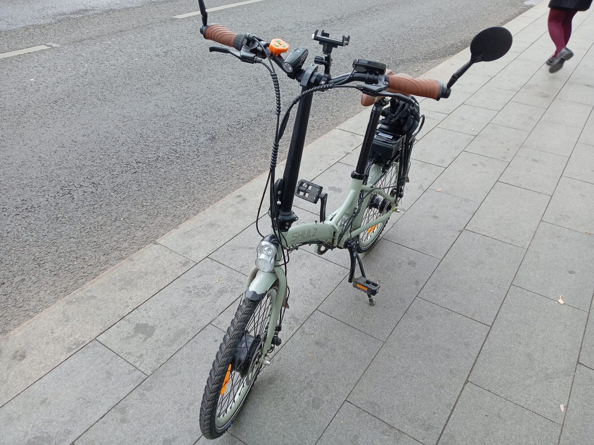 4)Самое главное - заменил резину. Новая резина зубастая, не сликовая. Ехать и дрожать от страха, что тебя на ровном месте занесёт, а также подпрыгивать на каждом камушке больше не надо, я уже успел оценить! Новая резина оборудована мощной защитой от проколов. Больше никаких ежемесячных пробитых колёс не будет! Вообще, сликовую резину есть смысл ставить только на шоссейники, где человек прям до безумия хочет максимально ошалело быстро гнать. На складном, немного увесистом ( 19 кило - это не вес для подобного железного коня, но и от невесомости бесконечно далеко) электровелике с тихим мотором на 25 км/ч сликовая резина - это бессмысленное зло. Человек явно не гонится за мировыми рекордами, зачем ему эта накатистость ценой собственной безопасности? Осуждаю производителя за столь неуместную резину.
