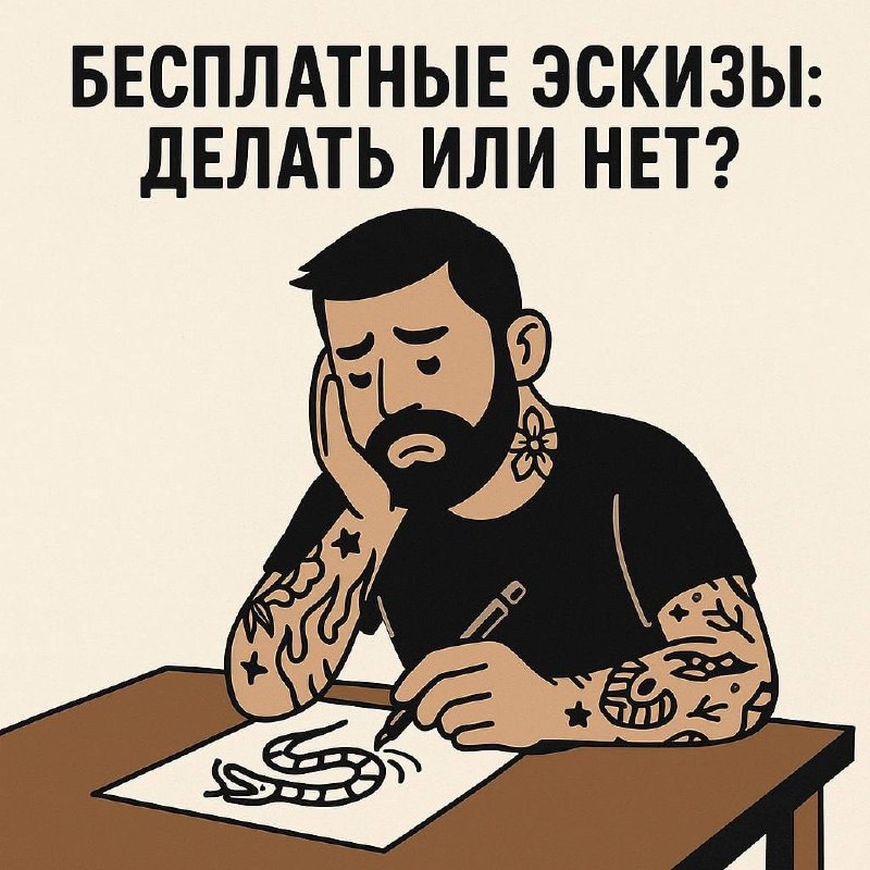Клиент «ещё думает», а ты уже рисуешь❓ Многие мастера на старте попадают в одну и ту же ловушку: клиент пишет — «Сделай эскиз, я посмотрю, если понравится — запишусь». И ты сидишь, тратишь вечер, вырисовываешь детали, а потом — тишина. Или делаешь эскиз, а в ответ - тишина..) Почему это ошибка? Эскиз — это уже работа. Ты вкладываешь время, идею, знания анатомии, композицию. Это не «черновик», а часть процесса. Бесплатный труд = безответственный клиент. Когда человек ничего не вкладывает, он не ценит. А значит, ему проще сказать «я передумал». Ты не рисуешь для “посмотреть” — ты создаёшь под конкретного человека. И этот человек должен быть заинтересован не просто в картинке, а в сеансе. Cтратегия, которая никогда подводит. — Берёшь предоплату за эскиз (даже символическую). Это фильтр. — Объясняешь просто: «Эскиз — часть моей работы. Я уделю время, подберу форму под тело. Если решишься, эта сумма войдёт в стоимость татуировки». — Или рисуешь после внесения залога на сеанс. Эски