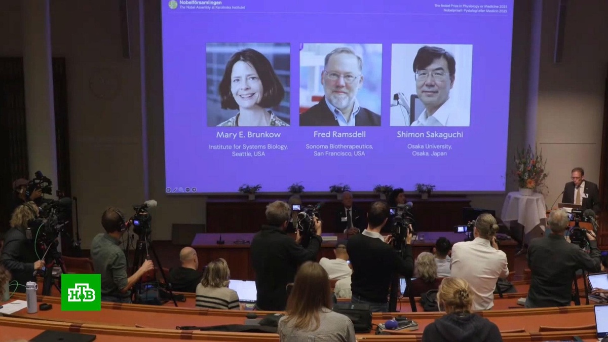 [ Смотреть видео на сайте НТВ ] Нобелевский комитет объявил лауреатов премии по медицине. Нобелевская премия 2025 года присуждена ученым Мари Брунков (Институт системной биологии, США), Фреду Рамсделлу (Институт иммунотерапии рака Паркера, США) и Шимону Сакагучи (Университет Осаки, Япония). Как заявили в Нобелевском комитете, присудить им премию решили за открытия, которые «сыграли решающую роль в понимании того, как работает иммунная система». В прошлом году лауреатами стали Виктор Амброс и Гэри Равкан из США. Их наградили «за открытие микроРНК и ее роли в регуляции генов». Вручением премии в области медицины традиционно открывается Нобелевская неделя. Завтра комитет объявит обладателя премии по физике. [ Смотреть видео на сайте НТВ ]