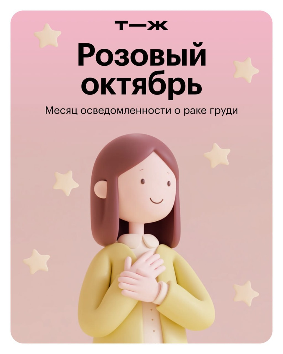 💔 Рак молочной железы — самое распространенное онкозаболевание. С 6 по 12 октября в России пройдет Неделя здоровья груди: в эти дни фонд поддержки женщин с онкозаболеваниями «Дальше» будет проводить бесплатные консультации онкомаммологов в разных городах страны. Кабинеты специалистов будут открыты в крупных торговых центрах Москвы, Санкт-Петербурга, Казани и Волгограда. Время и подробности можно узнать на сайте проекта розовыйоктябрь.рф Это отличный повод пройти осмотр — или рассказать о возможности близким. А вот что можно сделать не выходя из дома: 🩷 Узнать о распространенных мифах о раке груди https://t-j.ru/tg/breast-cancer-myths/ Пройти наши бесплатные курсы о женском здоровье: 🩷 «Как ходить по врачам» — о том, как следить за здоровьем в разном возрасте 🩷 «Как позаботиться о своем теле» — базовый курс об устройстве организма и гигиене