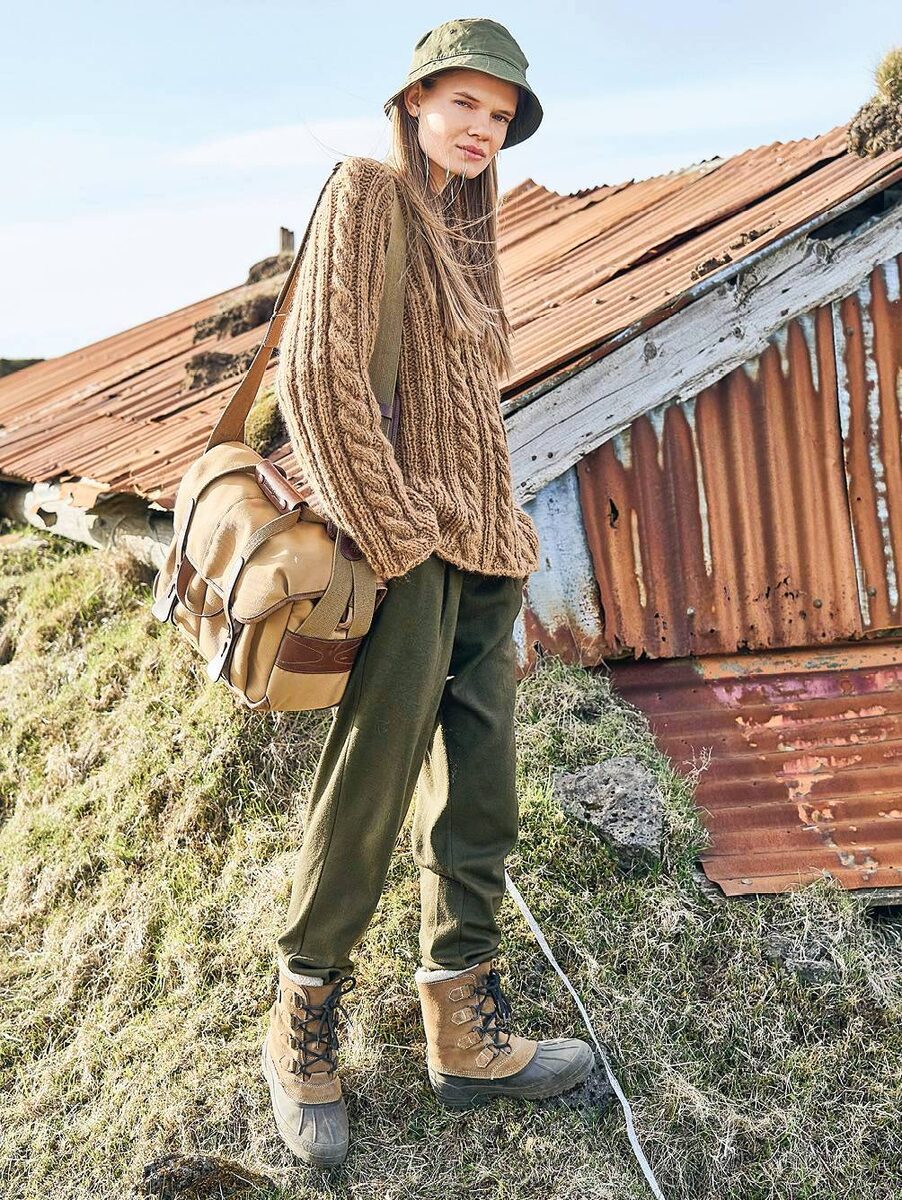 Начните с горловины и продолжайте вязать сверху вниз по кругу — несложное и увлекательное бесшовное вязание! Понятная схема вязания поможет вам добиться идеального перехода узора в области V-образного выреза. После этого вы сможете легко продолжить вязание косами и резинкой до самого подола. Остаётся только закрыть нижние швы рукавов.