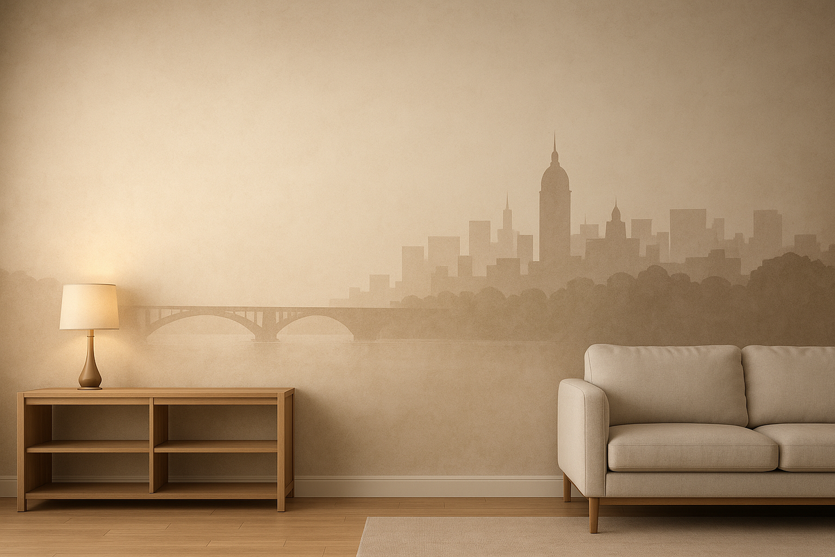 Готовые рецепты «Без визуального хаоса» = крупный мотив, один фокус, 30–40% воздуха, нейтральная моно/дуотон-палитра, матовый финиш и аккуратное освещение. У карт — минимум слоёв и типографики; у панорам — чистые силуэты и мягкий контраст. Держим масштаб и оси мебели — и получаем спокойный, «дорогой» акцент, который работает годами.